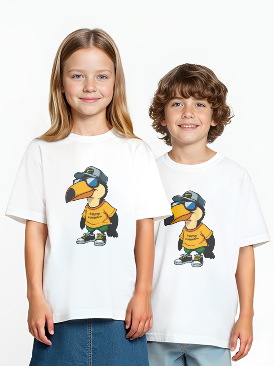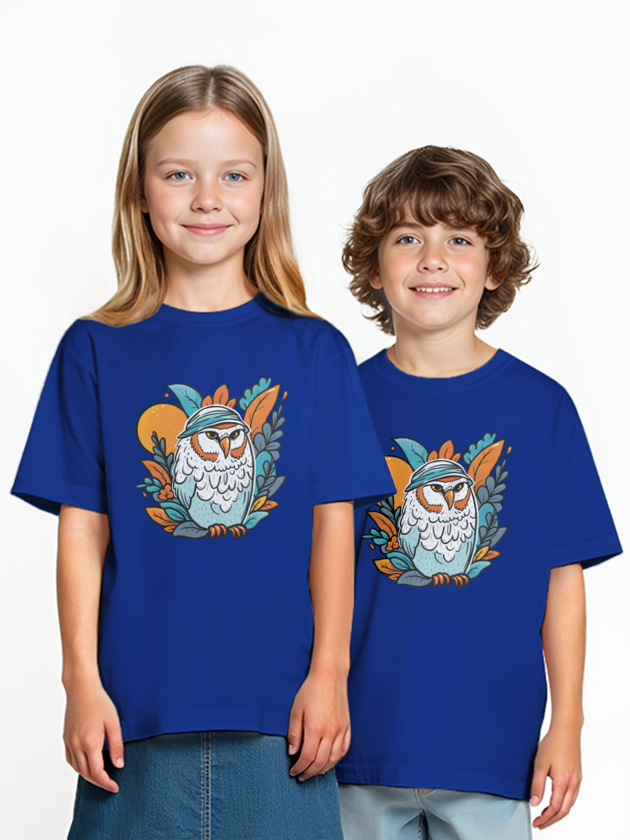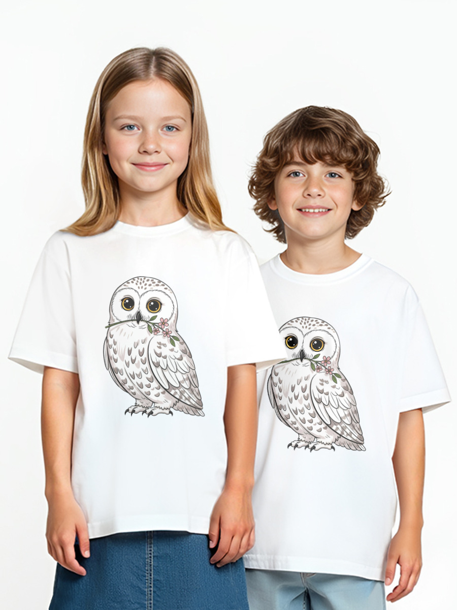 Детская оверсайз футболка «Полярная сова с веточкой розовых цветов в клюве»