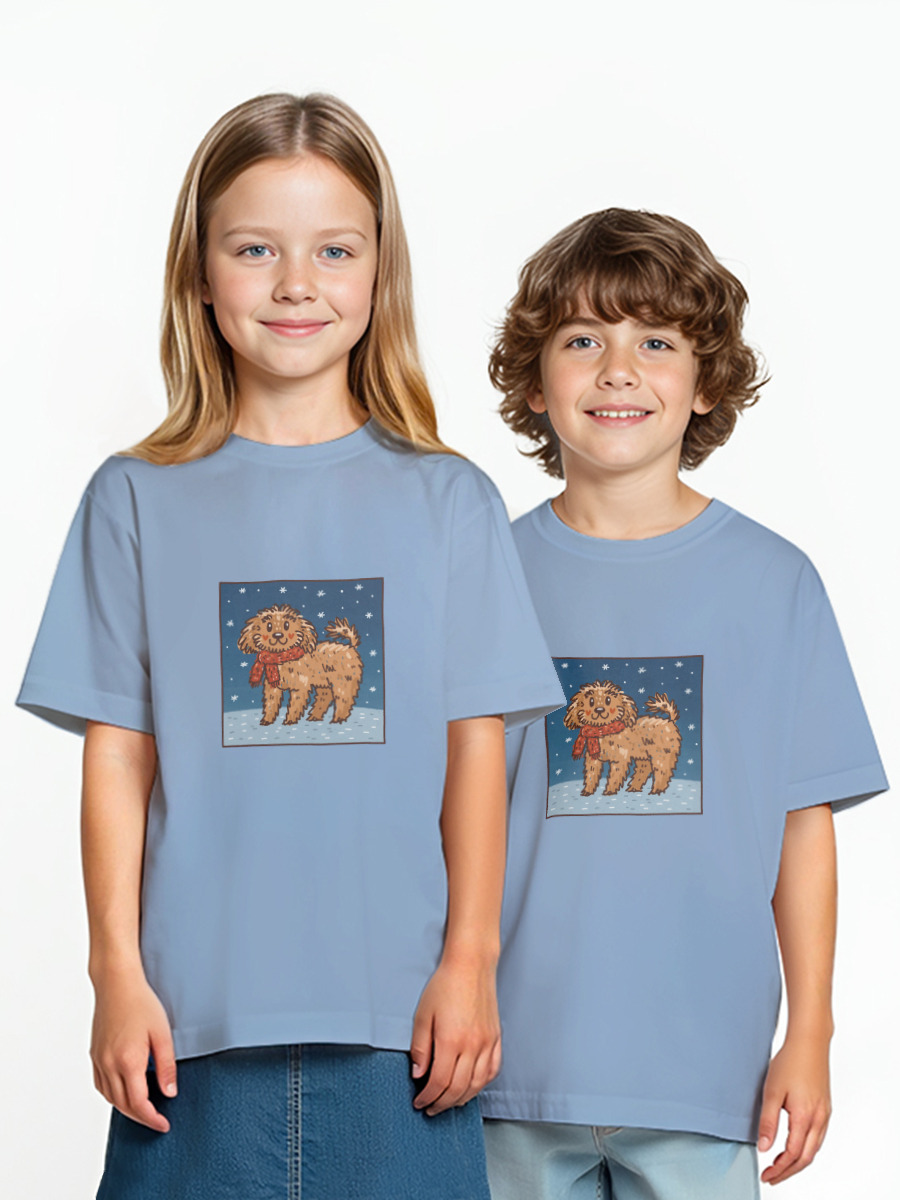 Детская оверсайз футболка «Мальтипу, пудель, кокапу. Новый год. Пейзаж»