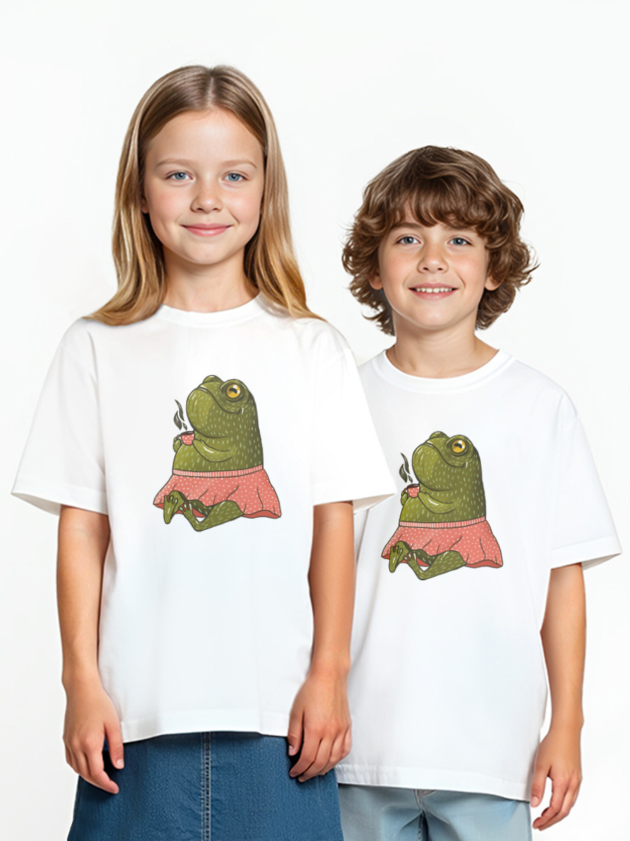 Детская оверсайз футболка «Чаепитие модной лягушки путешественницы»