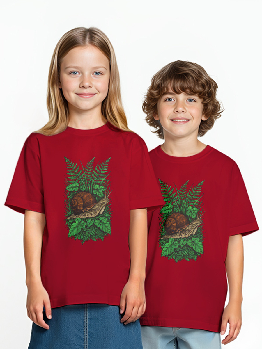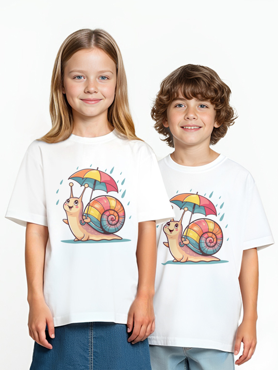 Детская оверсайз футболка «Радостная улитка с зонтиком прячется от дождя»