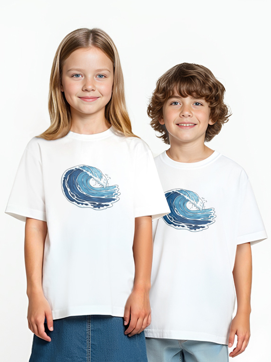 Детская оверсайз футболка «Большая волна с брызгами и пеной»