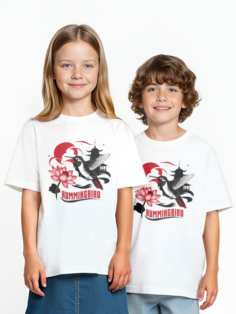 Детская оверсайз футболка «Простой принт с голубым цветком»