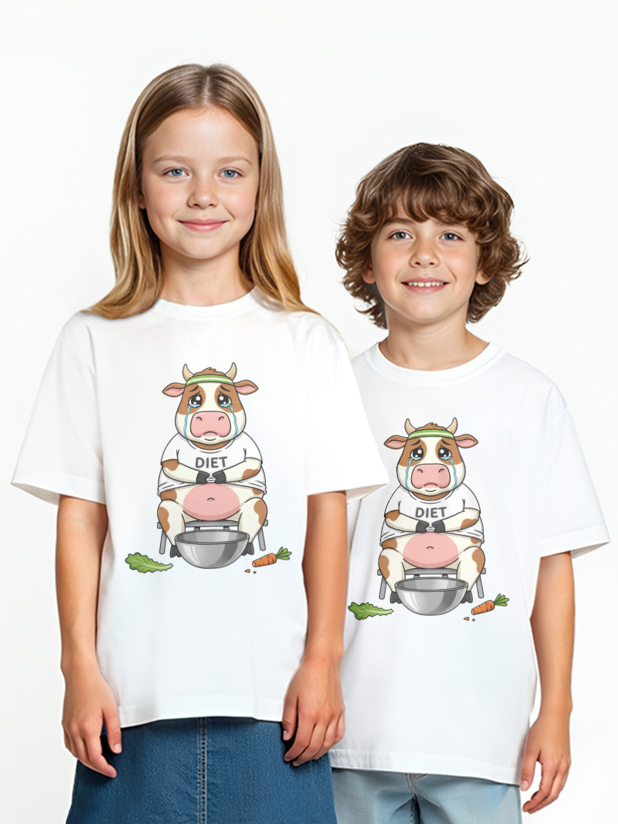 Детская оверсайз футболка «Корова сидит на диете и плачет»