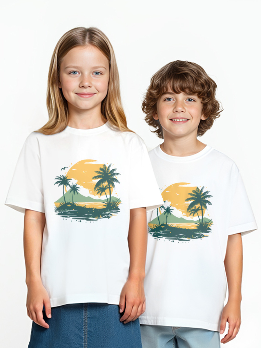 Детская оверсайз футболка «Морской пейзаж. Пальмы, море, горы. Тропики»