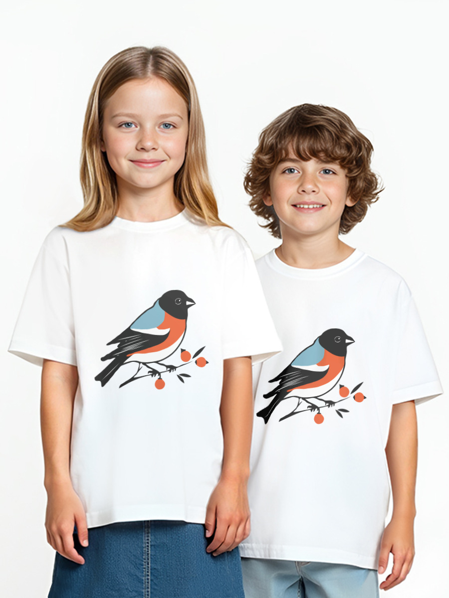 Детская оверсайз футболка «Зима Снегирь На Веточке Рябины Винтаж»