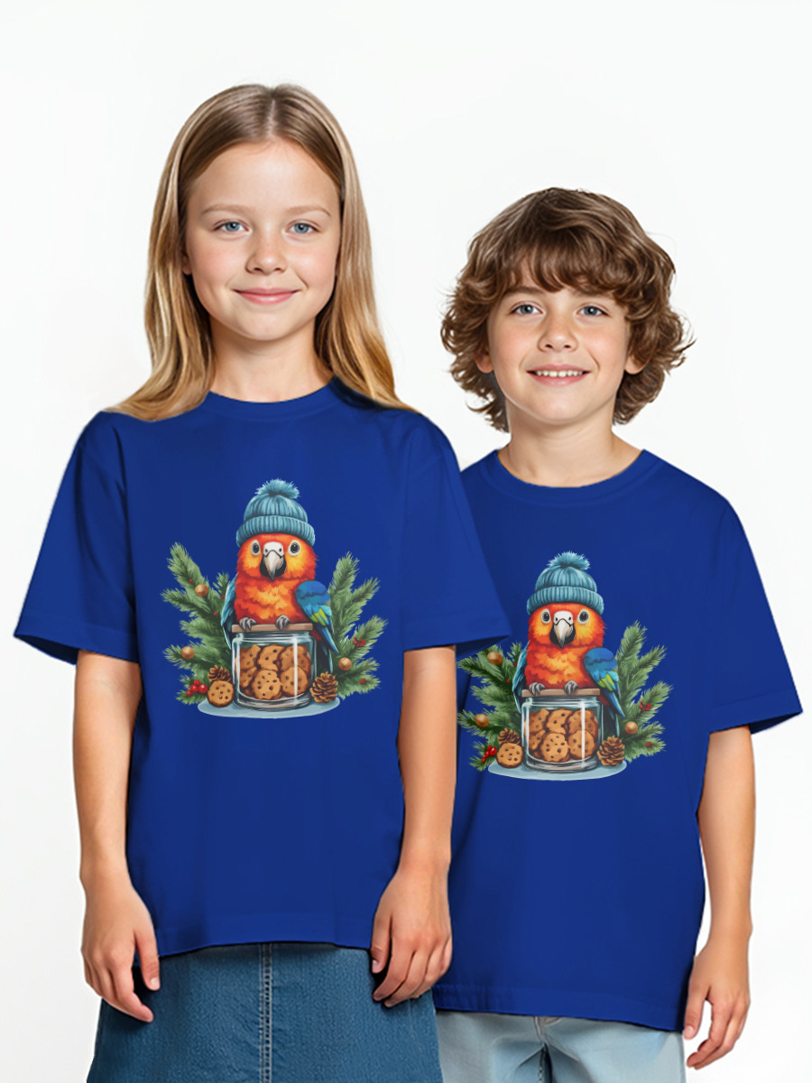 Детская оверсайз футболка «Попугай с печеньем. Новый год»