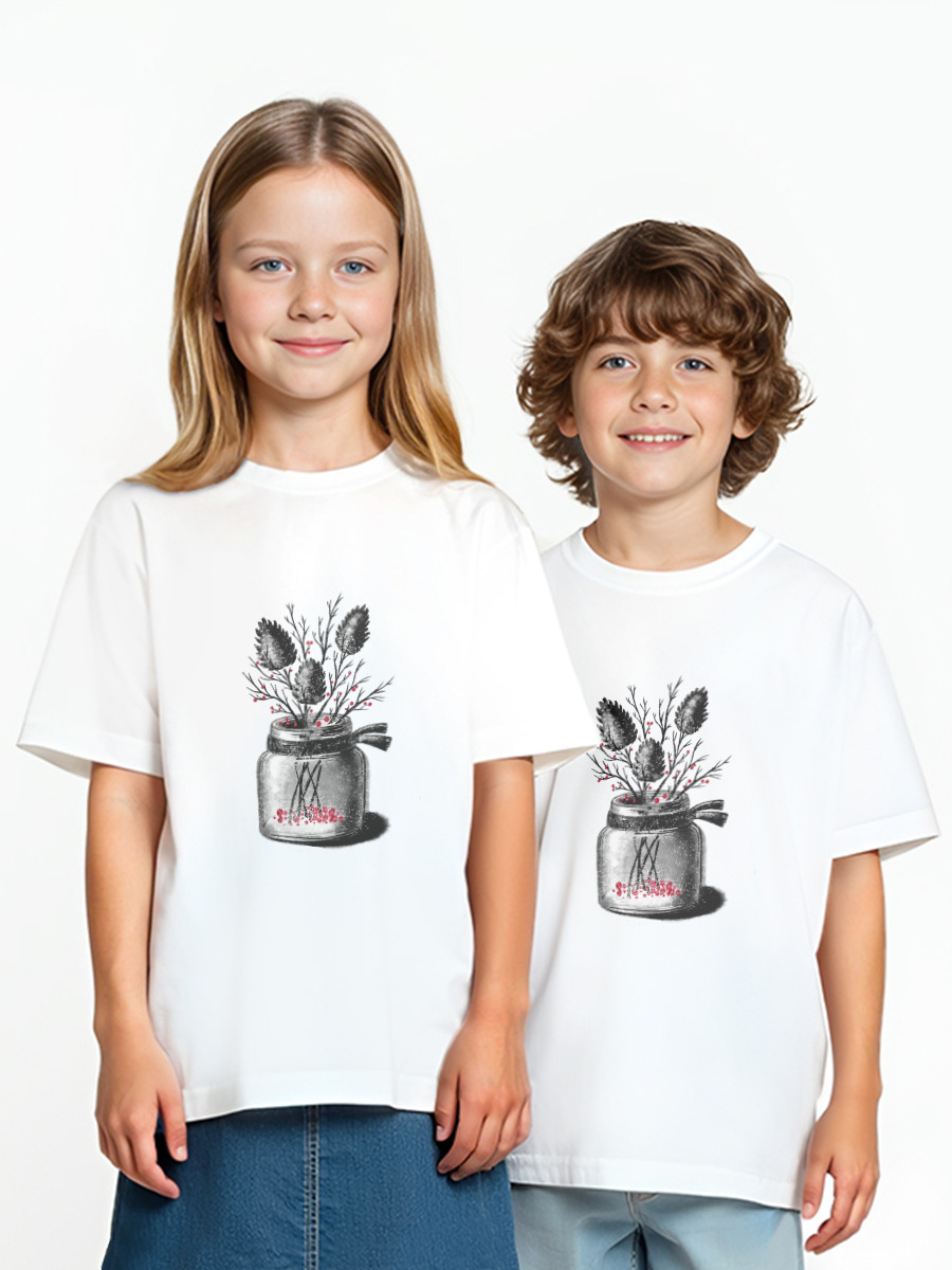 Детская оверсайз футболка «Шишки, веточки и ягоды в банке»