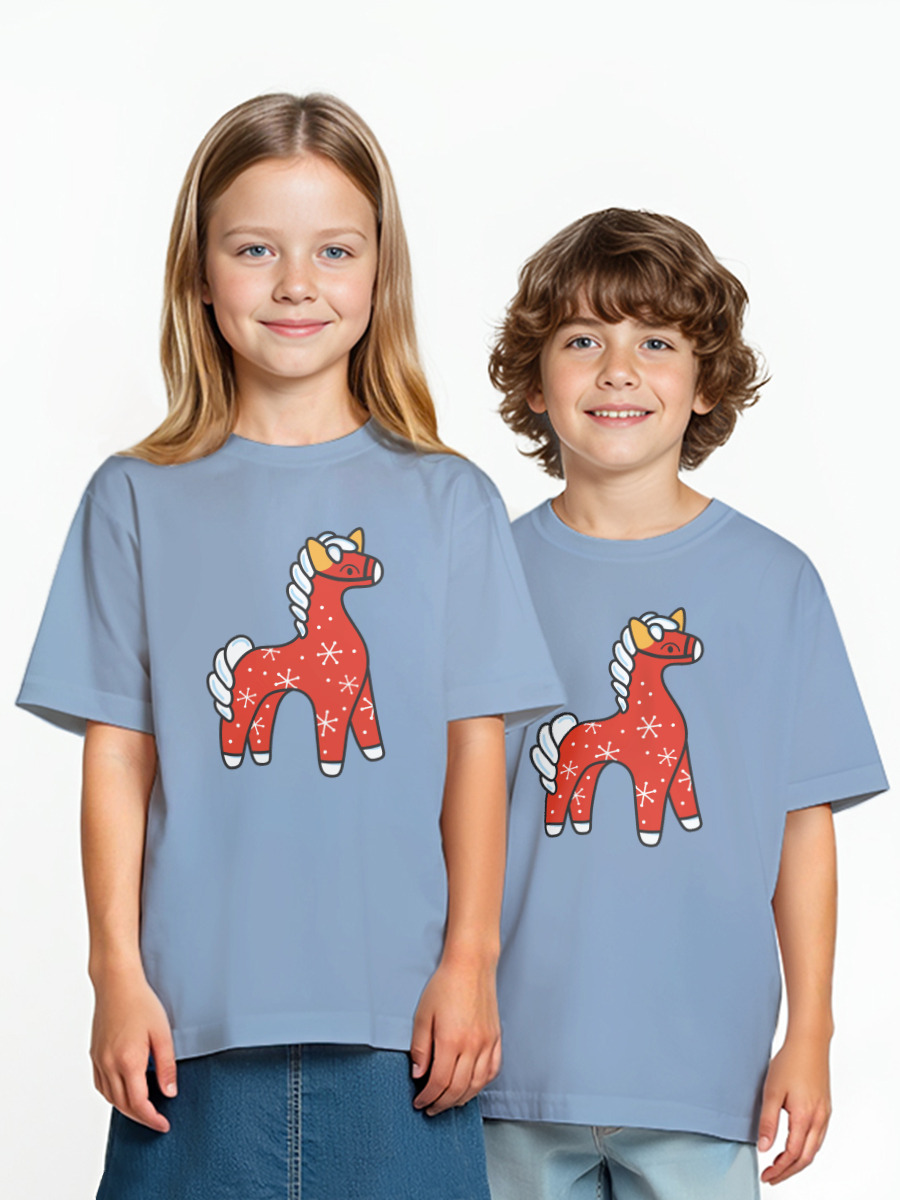 Детская оверсайз футболка «красный конь по мотивам дымковской игрушки»