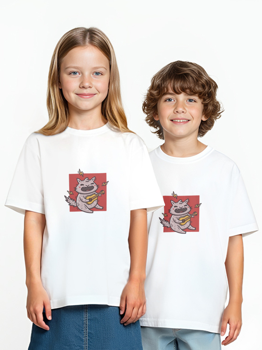 Детская оверсайз футболка «Кот и гитара. Музыкант. Рокер. Укулеле. Юмор»
