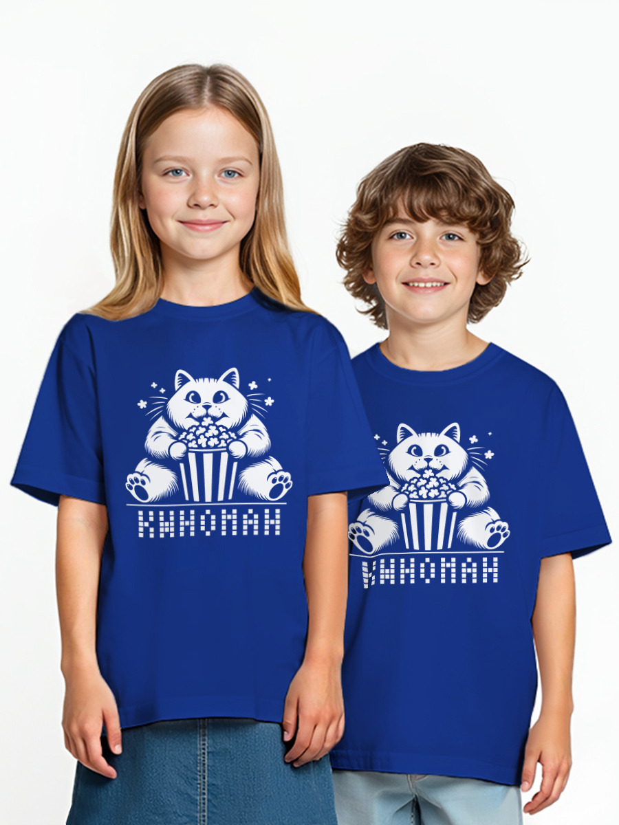 Детская оверсайз футболка «Прикольный кот с гантелями, надпись про спорт»
