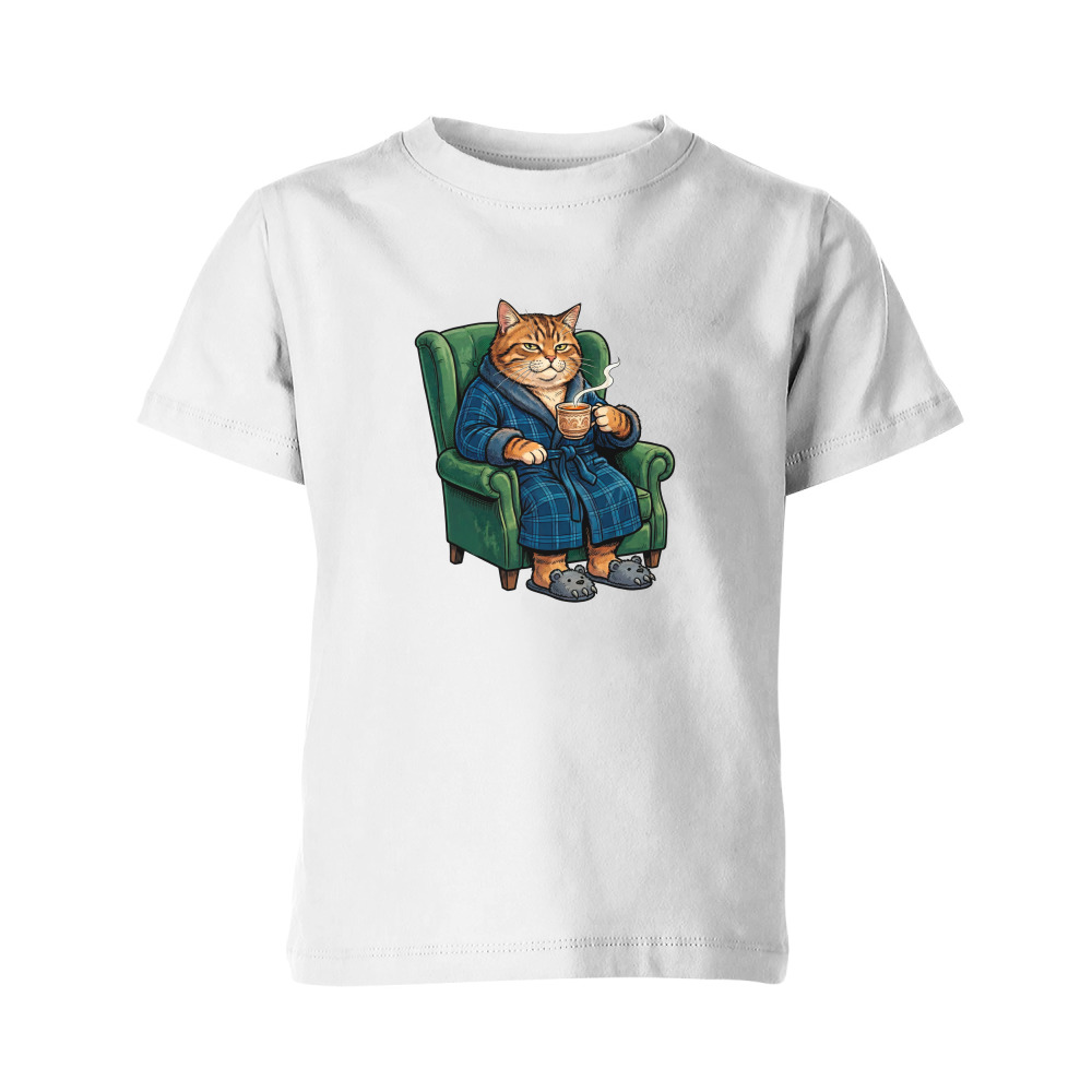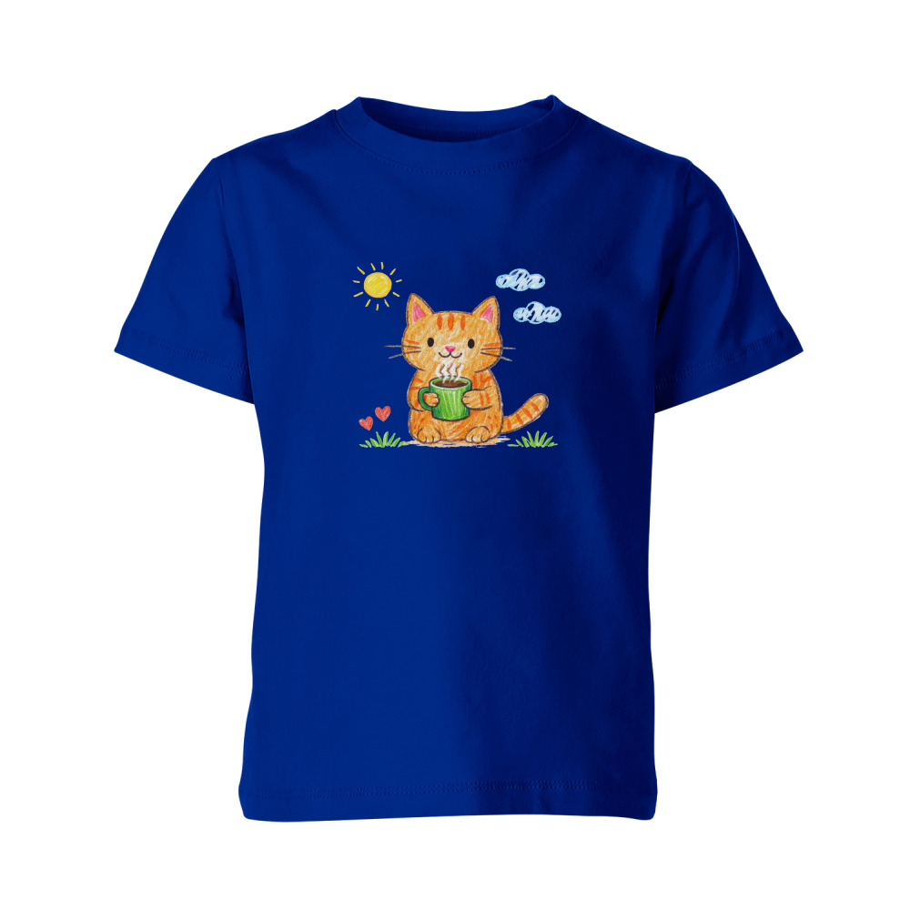 Детская футболка «Уютный рыжий кот с кофе, милый котик»