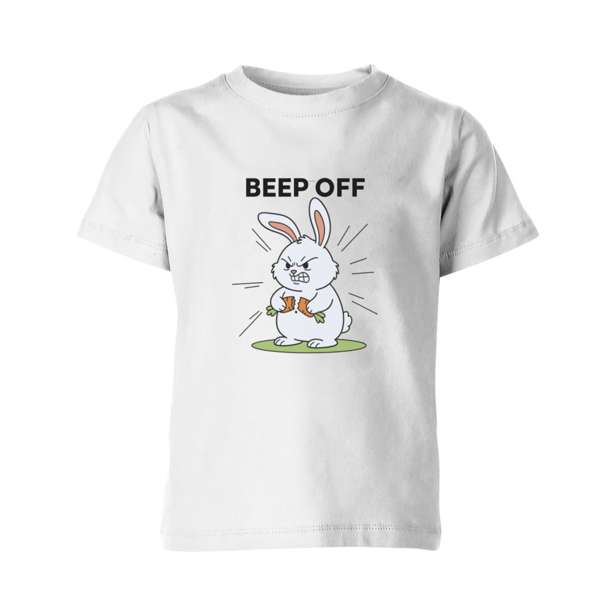 Детская футболка «Злой кролик с морковкой, надпись BEEP OFF»