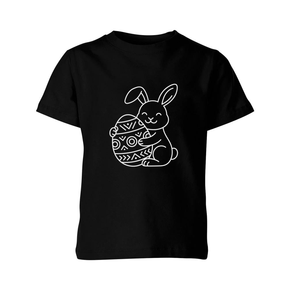 Детская футболка «Пасхальный кролик с яйцом (белый контур)»