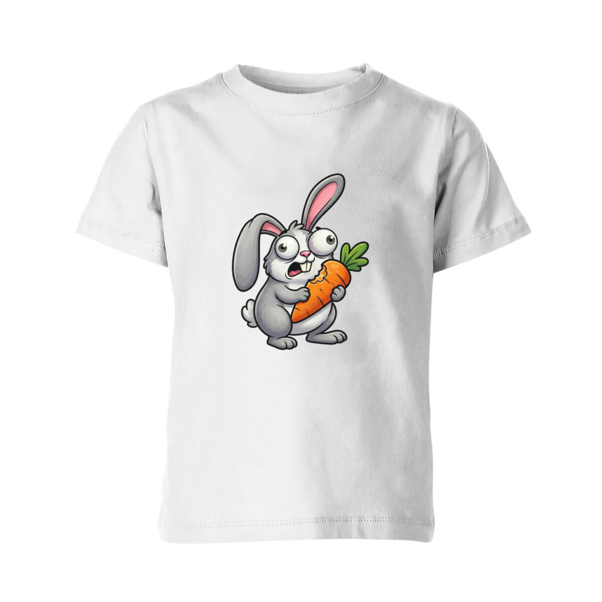 Детская футболка «Смешной кролик с морковкой»