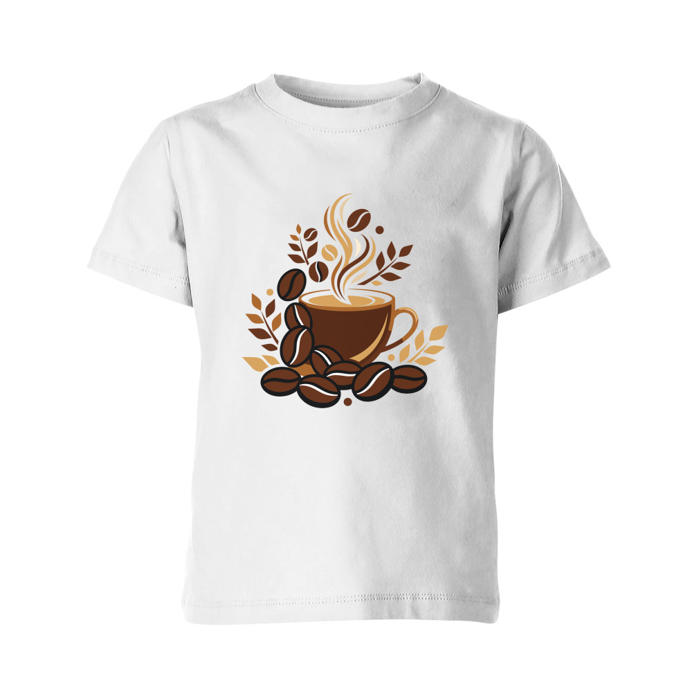 Детская футболка «Кофейная чашка с ароматным кофе и зёрнами»