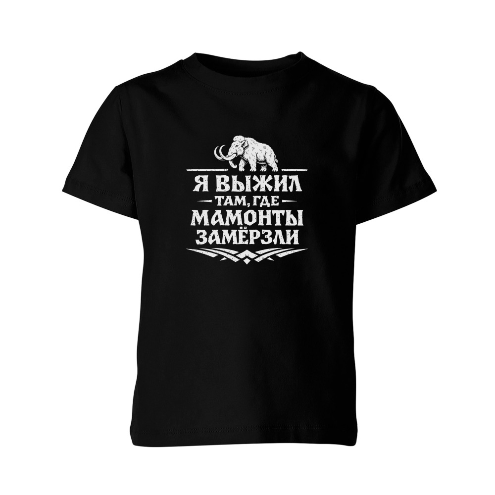 Детская футболка «Я выжил там,где мамонты замёрзли (надпись мем)»