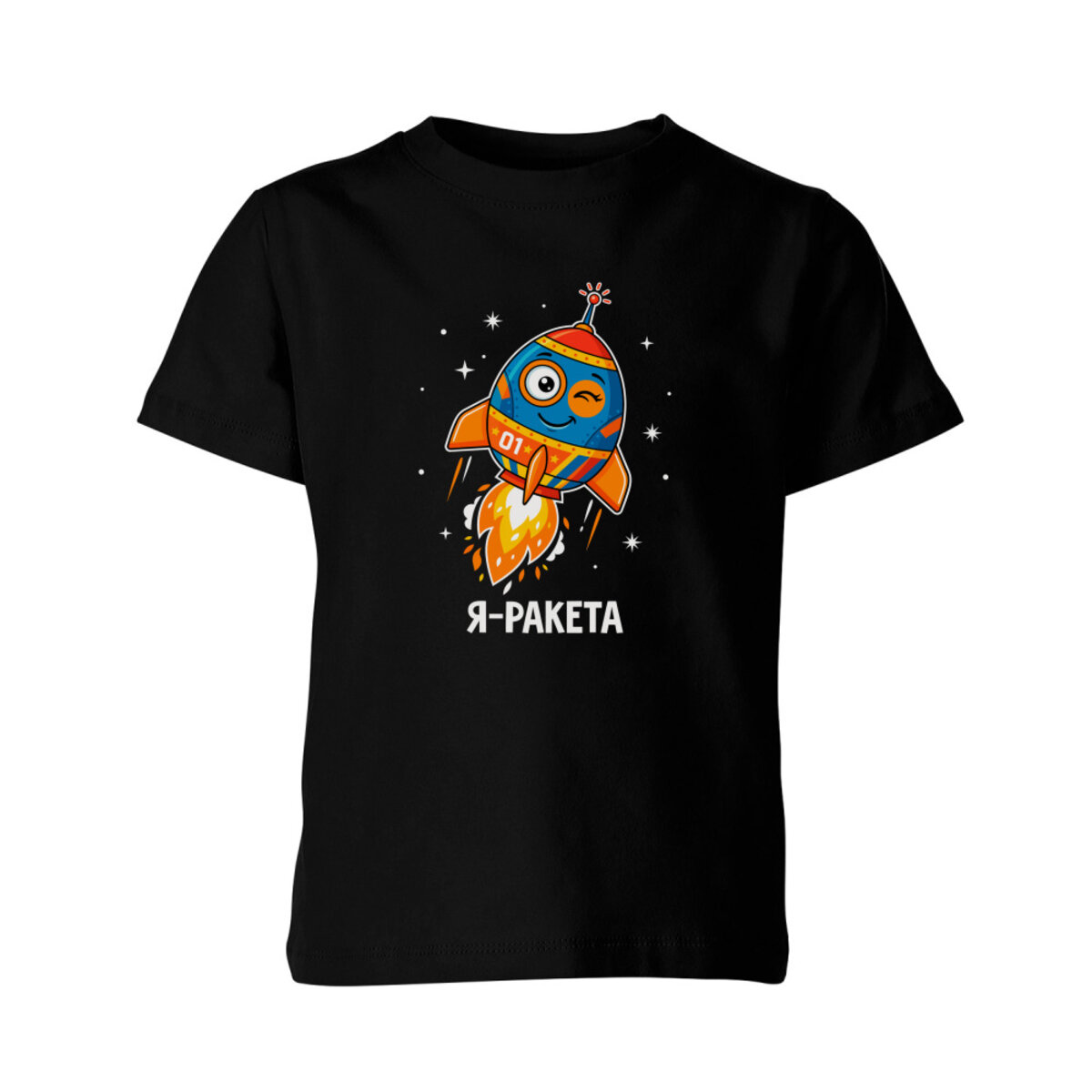 Детская футболка «Я-ракета. Весёлая ракета летит в космос (надпись)»