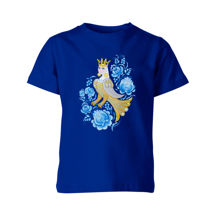 Детская футболка «Птица Сирин среди синих цветов. Русский узор»