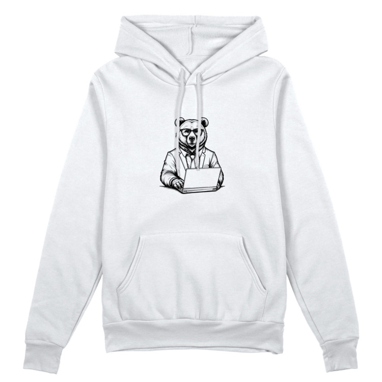 Мужская толстовка «Деловой медведь за ноутбуком»