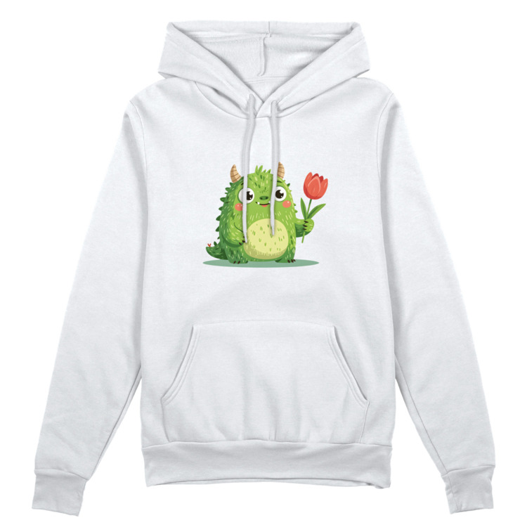 Мужская толстовка «Зелёный монстрик держит в лапке красный тюльпан»