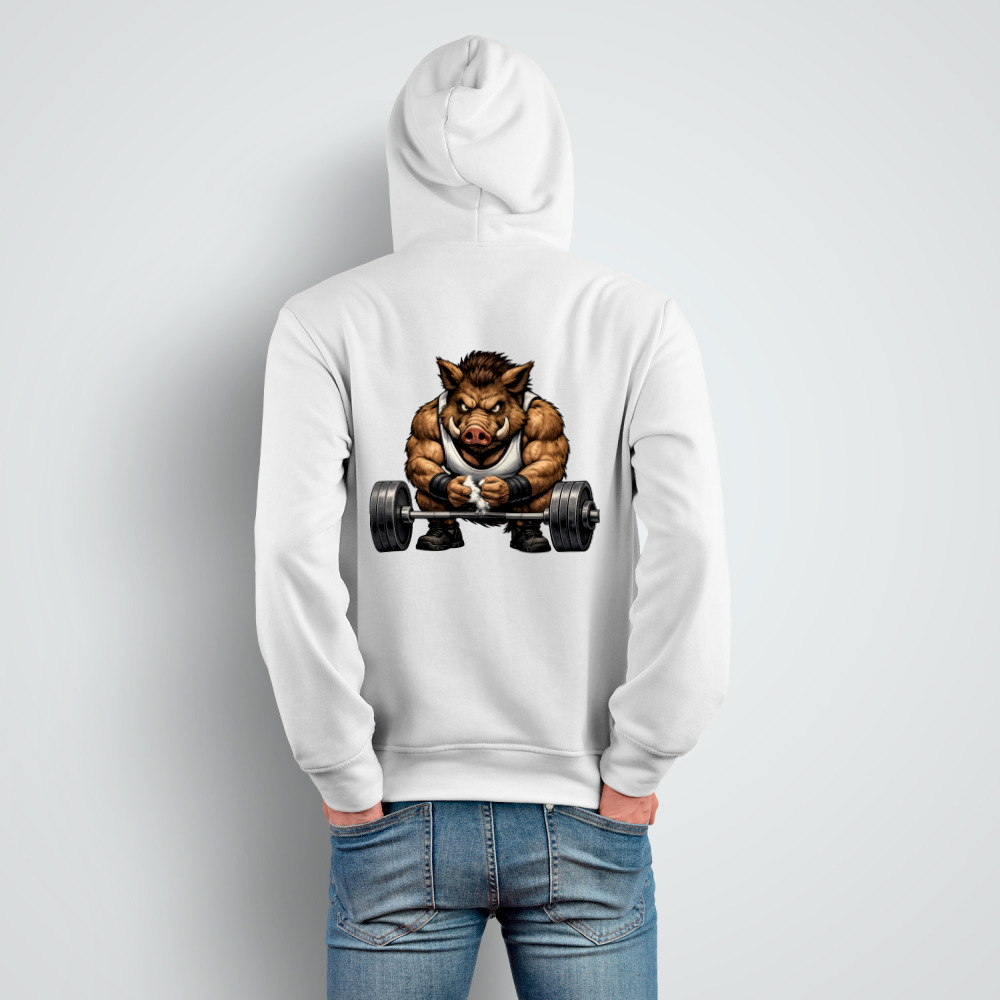 Мужская толстовка «Сильный кабан пауэрлифтер со штангой»