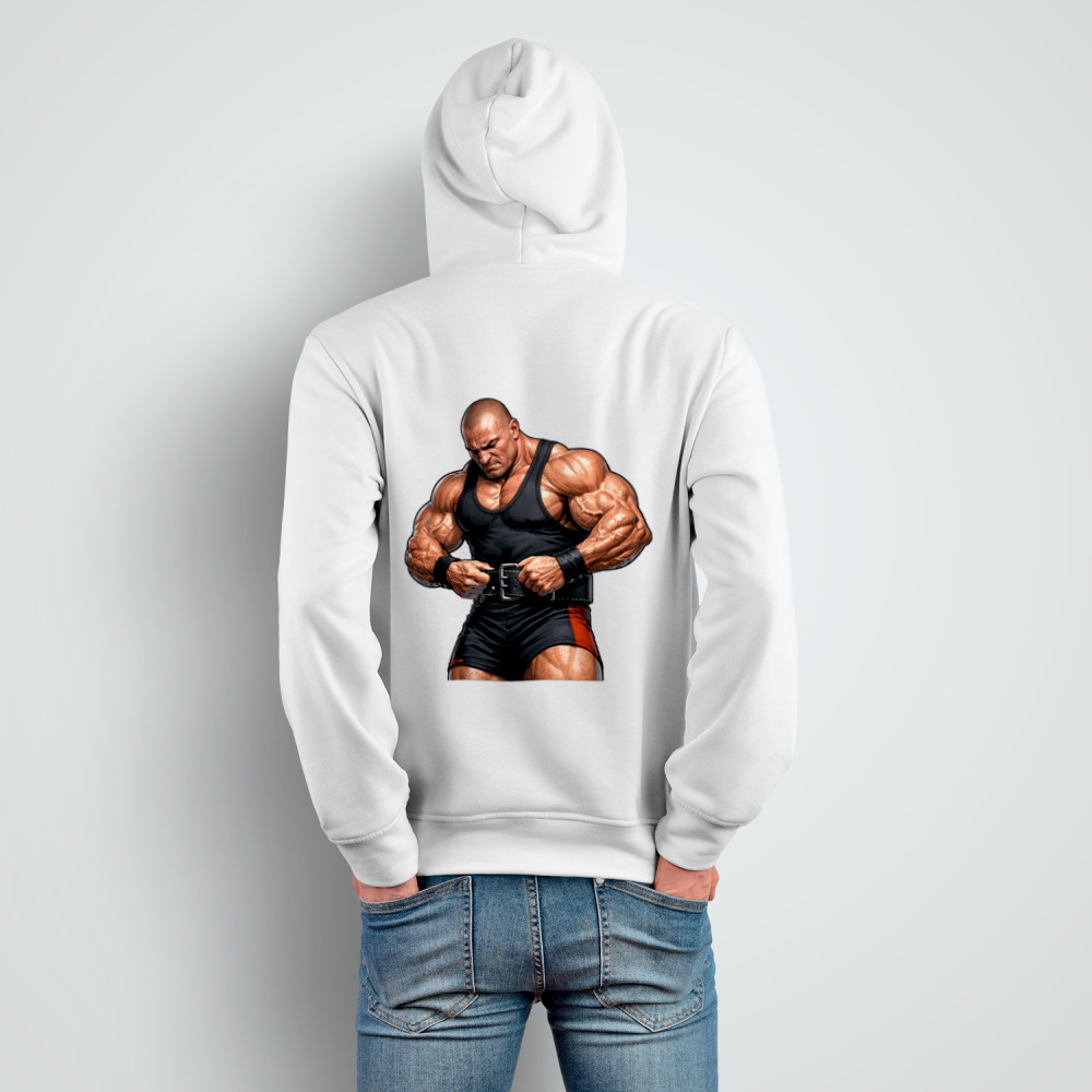 Мужская толстовка «Мощный бодибилдер с атлетическим поясом»