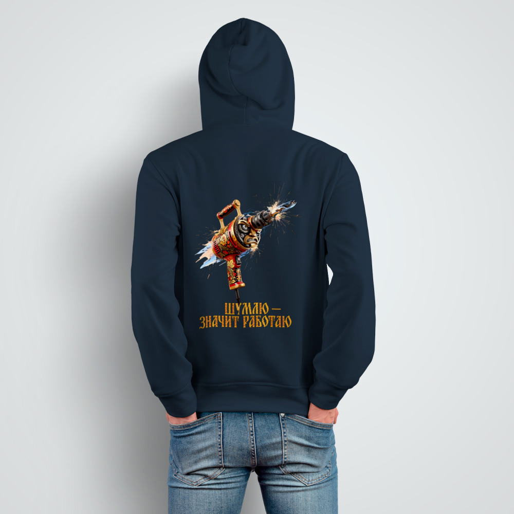 Мужская толстовка «Перфоратор, дрель, хохлома. Шумлю значит работаю»
