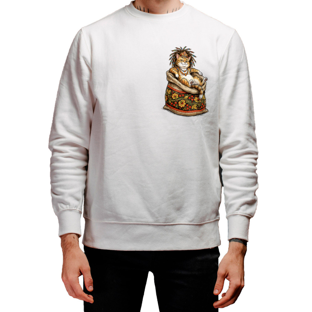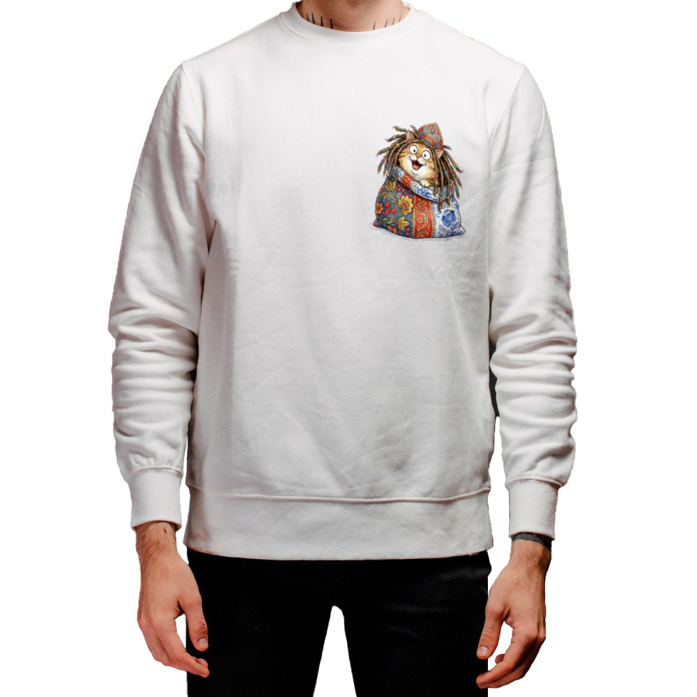 Мужской свитшот «Кот в мешке, хохлома, дреды, кокошник, мем»