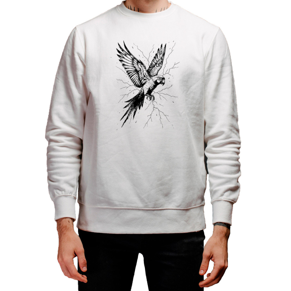 Мужской свитшот «Киберпанк-ласточка в полёте»