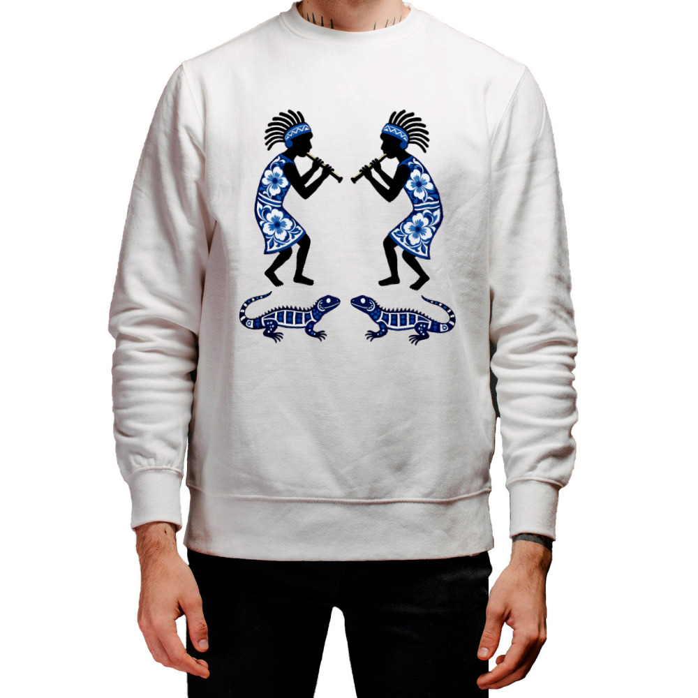 Мужской свитшот «Кокопелли дудка, индеец в стиле гжель»