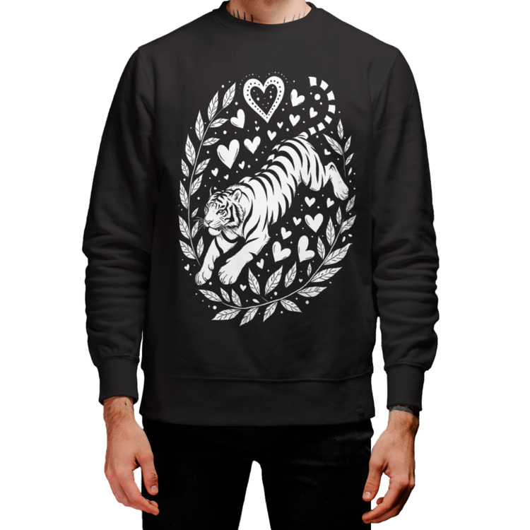 Мужской свитшот «Тигр в обрамлении сердец»