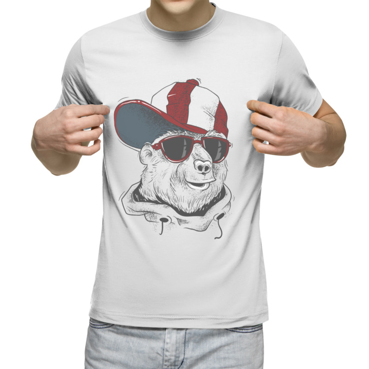 Мужская футболка «Крутой медведь в очках и кепке»