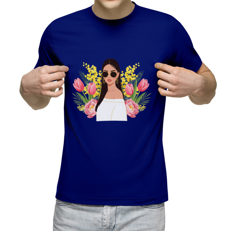 Мужская футболка «весна и девушка в черных очках с цветами»
