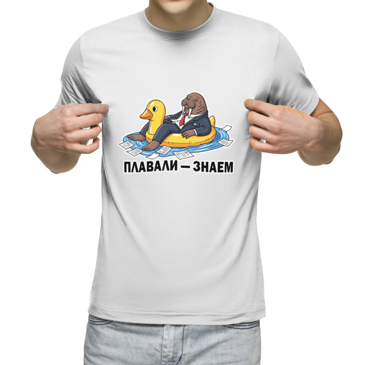 Мужская футболка «ПЛАВАЛИ ЗНАЕМ. Морж на надувном круге»