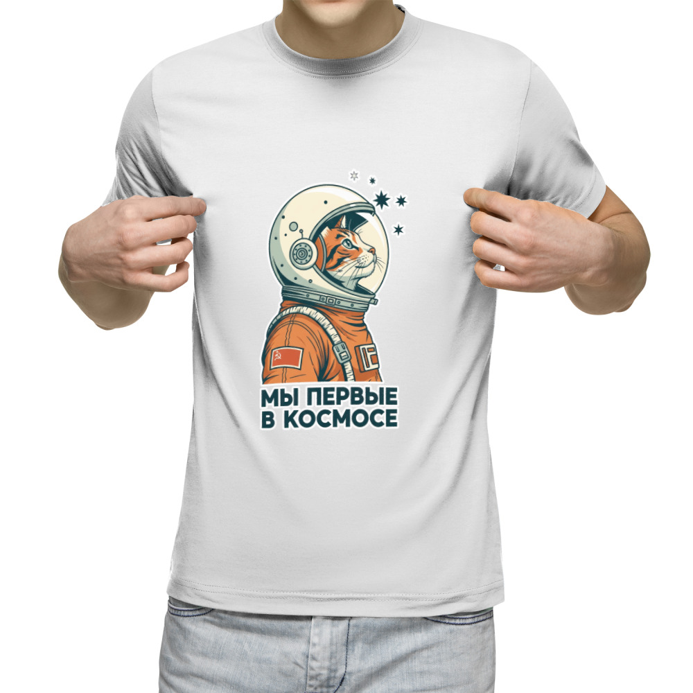 Мужская футболка «Кот в скафандре. Мы первые в космосе.»