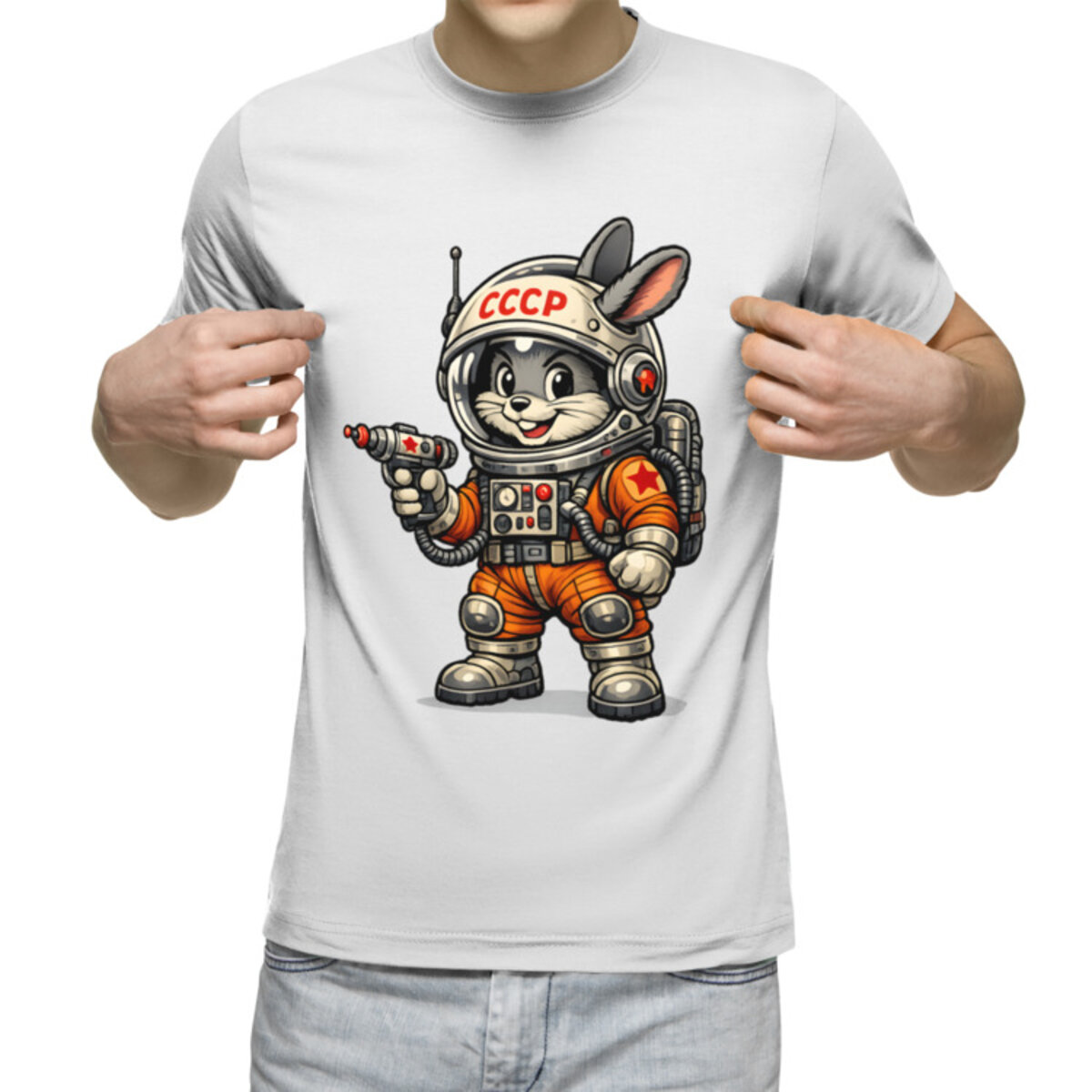 Мужская футболка «Заяц-космонавт в ретро-скафандре»