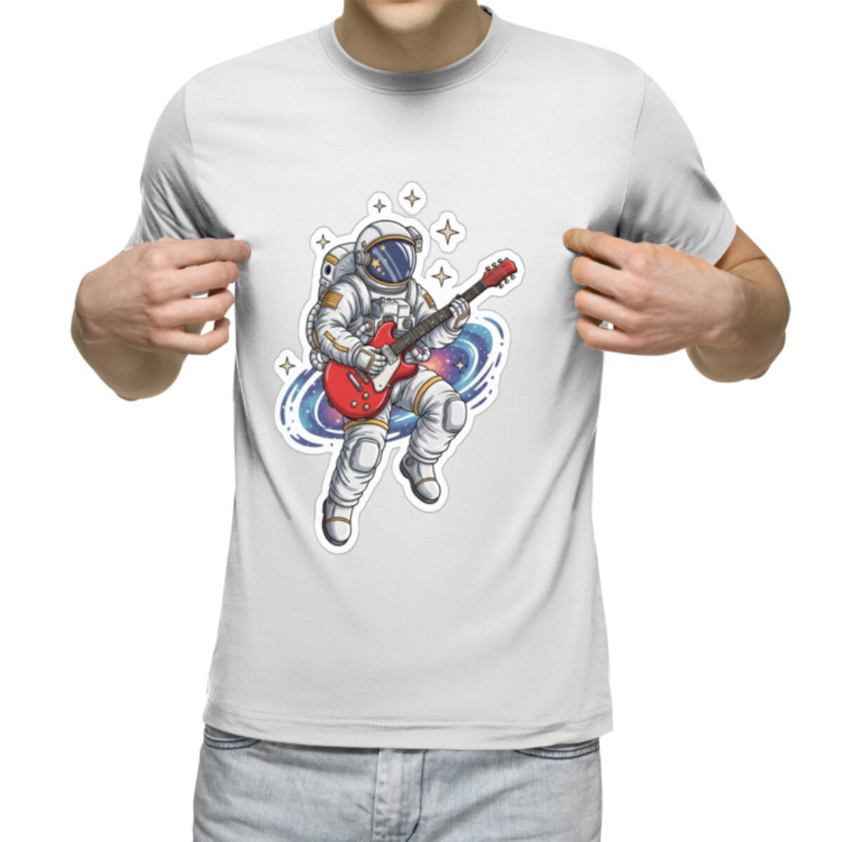 Мужская футболка «Космонавт играет на электрогитаре среди звёзд»
