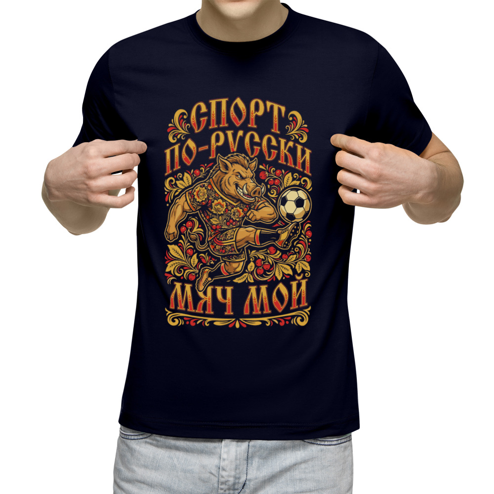 Мужская футболка «Спорт по-русски мяч мой, кабан, футбол»