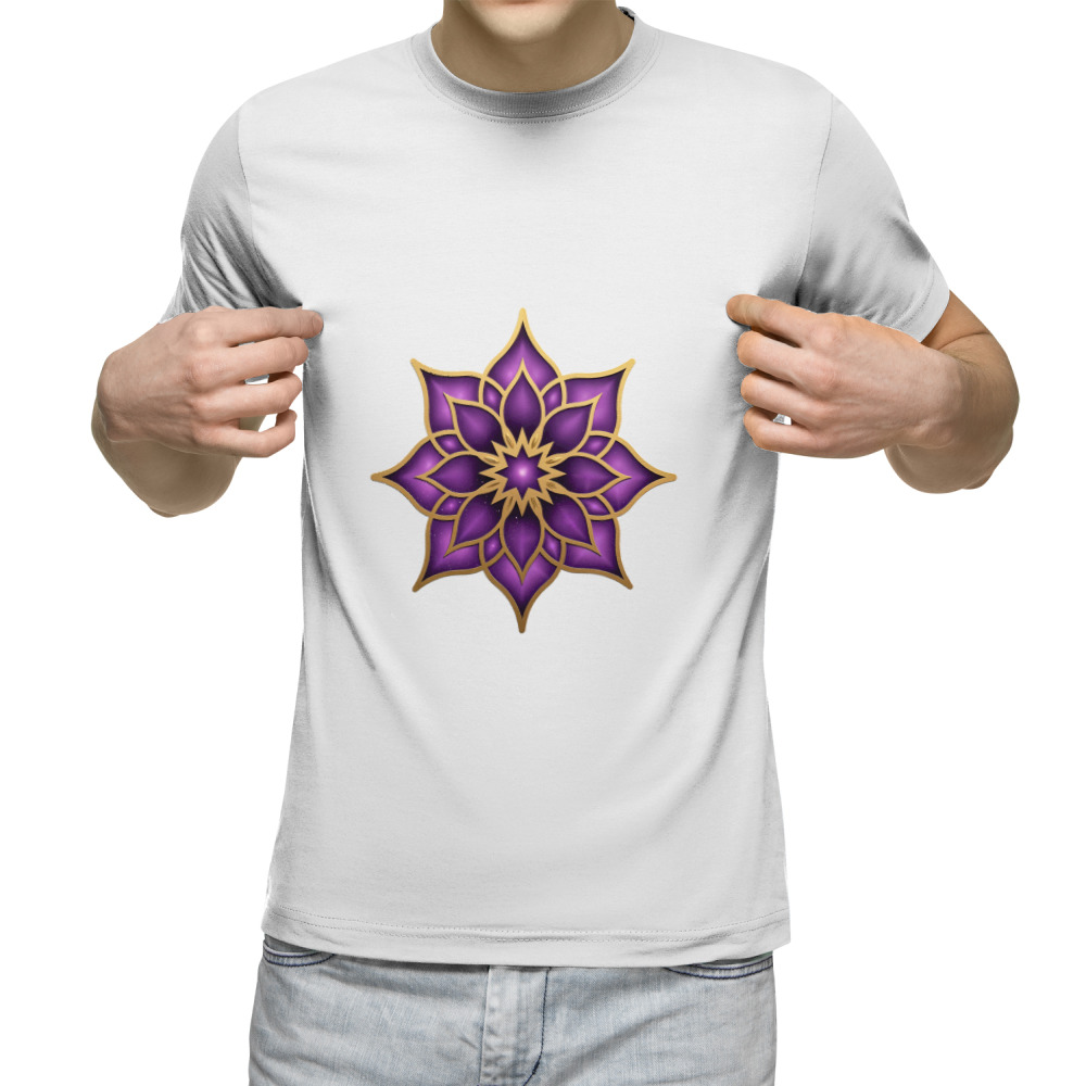 Мужская футболка «Фиолетовая мандала с золотым орнаментом»