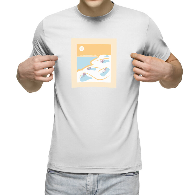 Мужская футболка «весенний пейзаж на озере в стилизованном стиле»