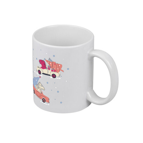Кружка «Дракон и динозавр на машинах с ёлкой»