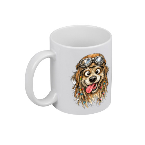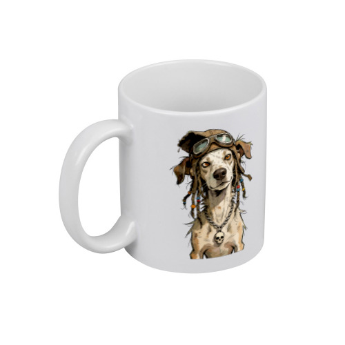 Кружка «Пёс с дредами в шлеме с очками и цепью с черепом»