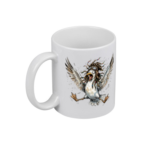 Кружка «Орущая чайка с дредами в шлеме и очках»