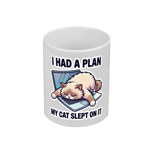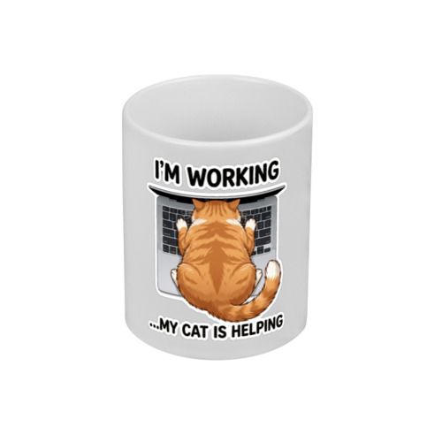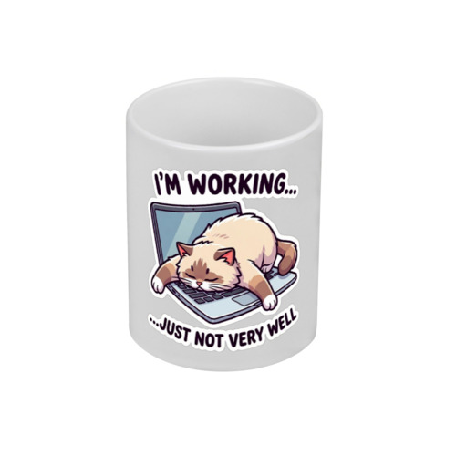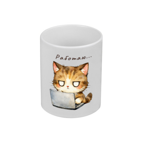 Кружка «Кот на ноутбуке мем-принт про удалённую работу»