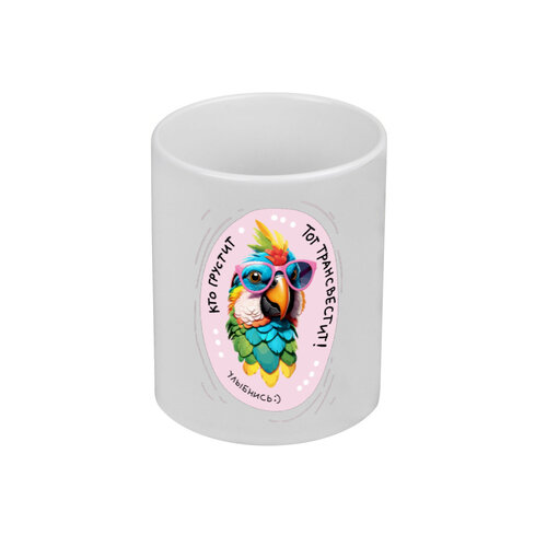 Кружка «Мем попугай в очках, надпись прикол, мотивация»