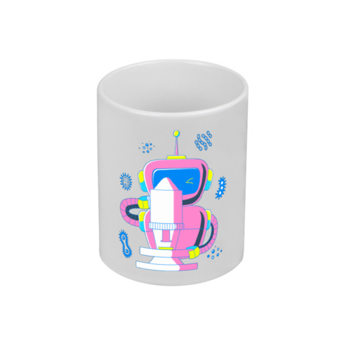 Кружка «Розовый робот-учёный с пробиркой»