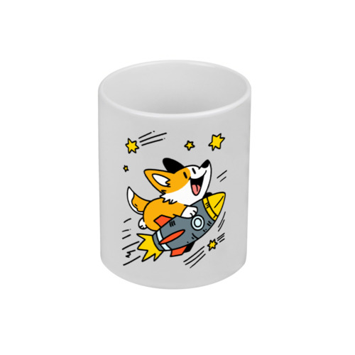 Кружка «Космонавт корги на ракете. Смешной щенок, песик»