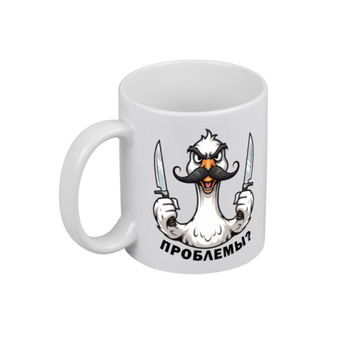 Кружка «Проблемы? Злой гусь с ножами. принт для повара»