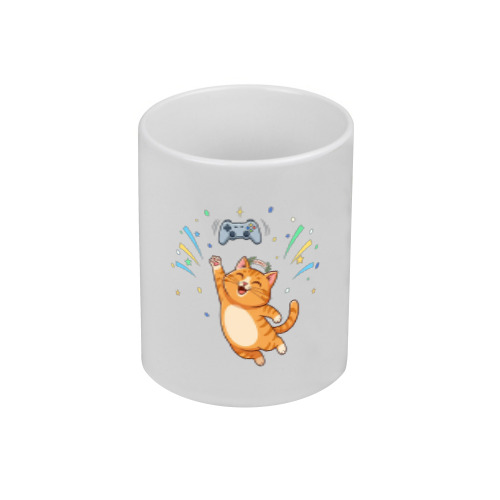 Кружка «Кот радуется и подкидывает пульт вверх»