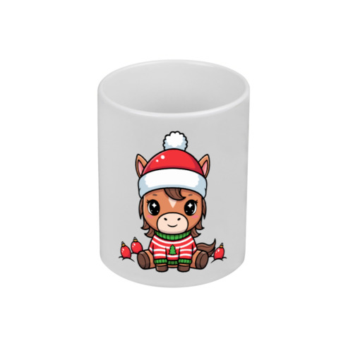 Кружка «Лошадка, пони с новогодними шарами и в шапке Санты»